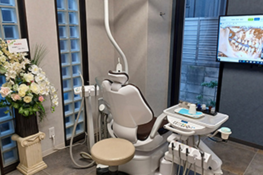 診療室は車いすやベビーカーのまま入れるほど十分なスペースをとっています。圧迫感や緊張感を感じないように広々としていますので、リラックスして治療を受けていただけます。